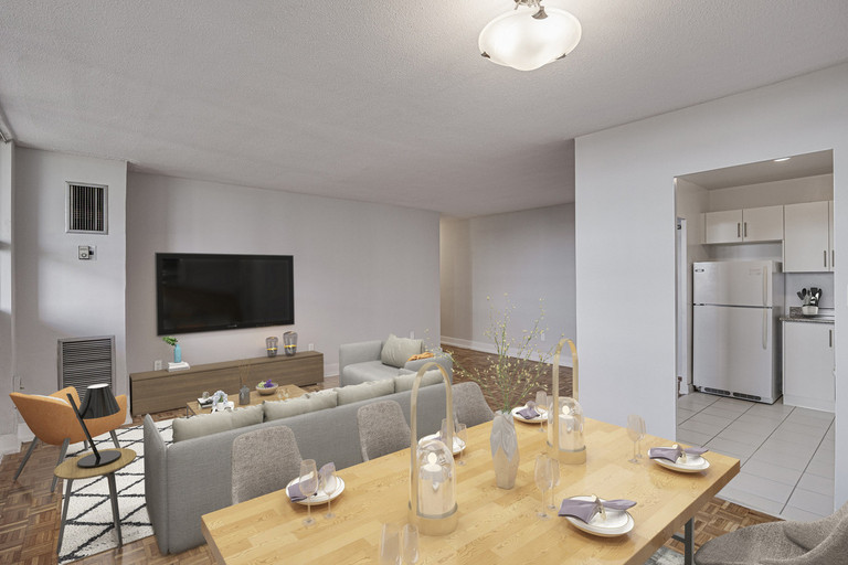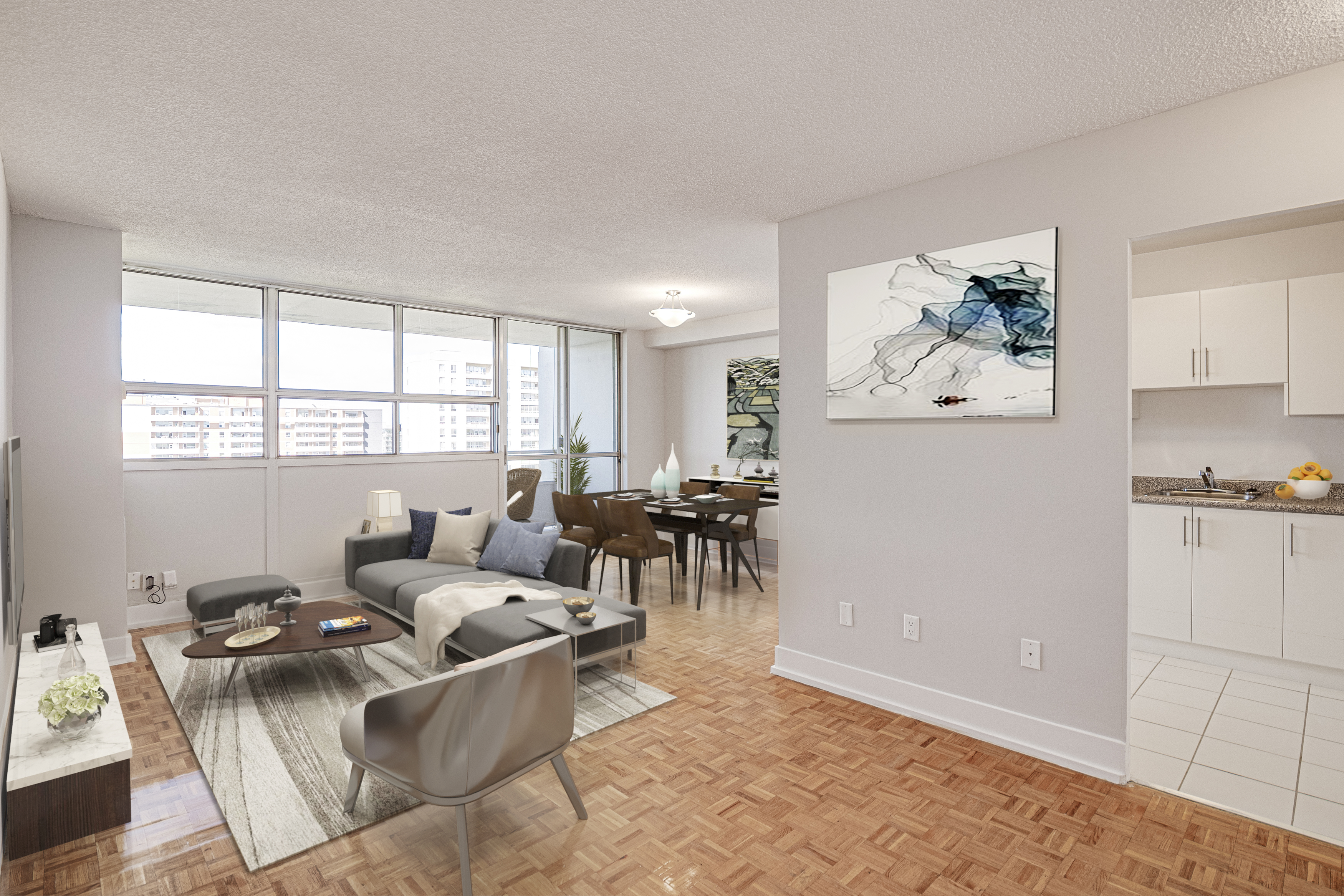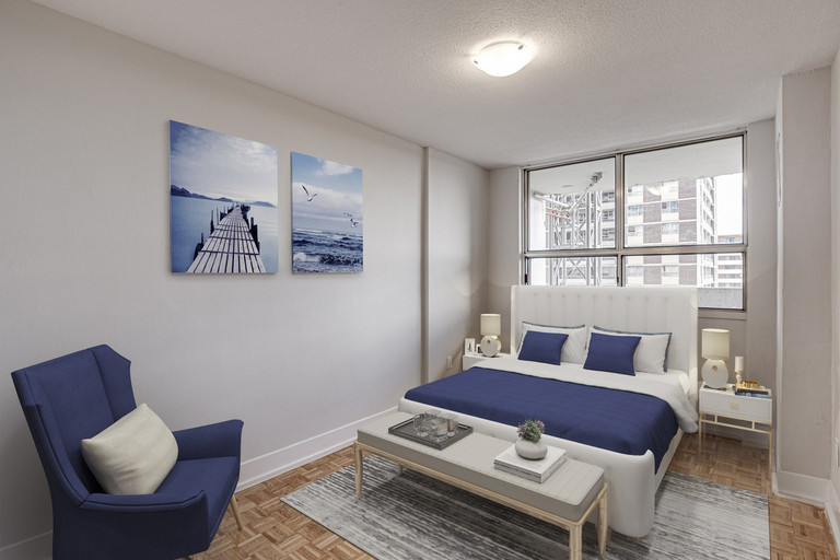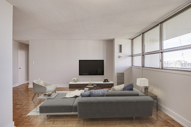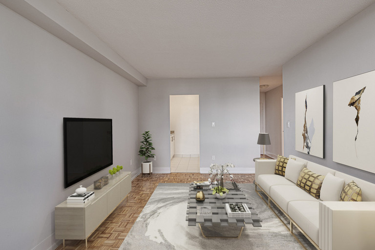This clean and welcoming building boasts freshly painted suites with gleaming hardwood floors, fully renovated kitchens and bathrooms, brand new millwork throughout each unit, brand new spacious balconies, fully modernized elevators and in unit air conditioning!