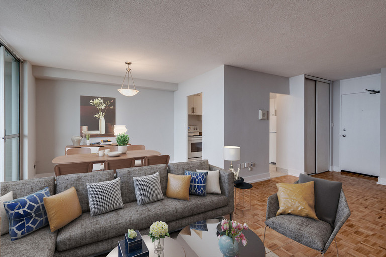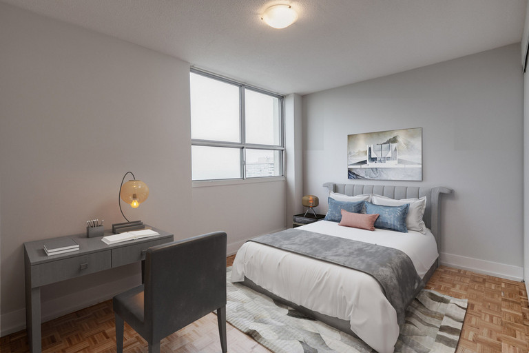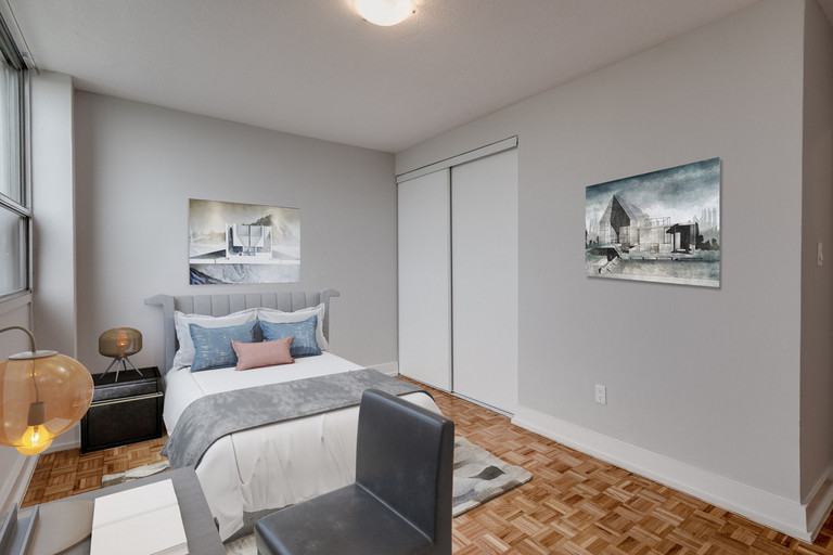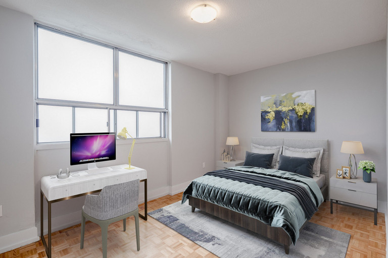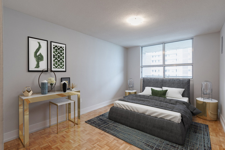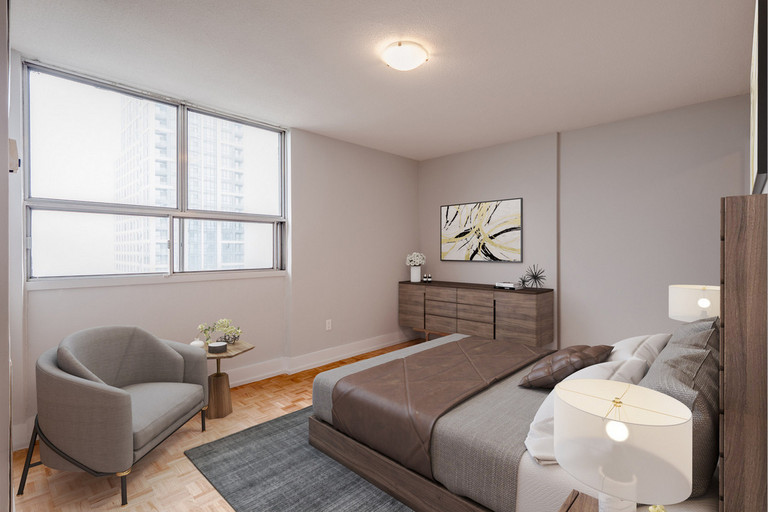 There are Two apartment buildings in this complex comprising of Studios, Junior 1's, 1, 2, and 3 bedroom suites. The suites are spacious and bright, freshly painted, with fully renovated kitchens & bathrooms, refinished hardwood floors, and new millwork throughout, and each suite is air conditioned. Residents of the property enjoy a large indoor swimming pool, updated fitness facilities, brand new infrared saunas, squash courts, Updated Laundry facilities, a table tennis / games room, and more! The Property boasts secured underground parking, electronic access control, onsite staff, and 24 hour security.