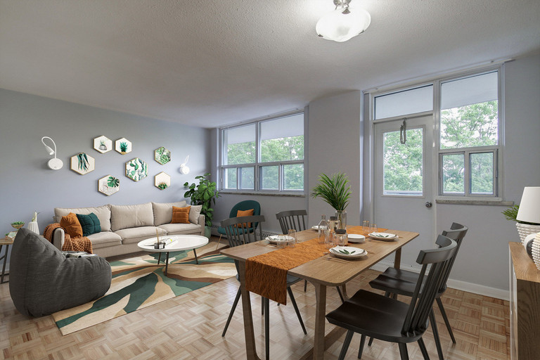 Modern comforts with classic charm: Our suites boast large kitchens with ample cabinet space, updated bathrooms, and large windows that flood the space with natural light.