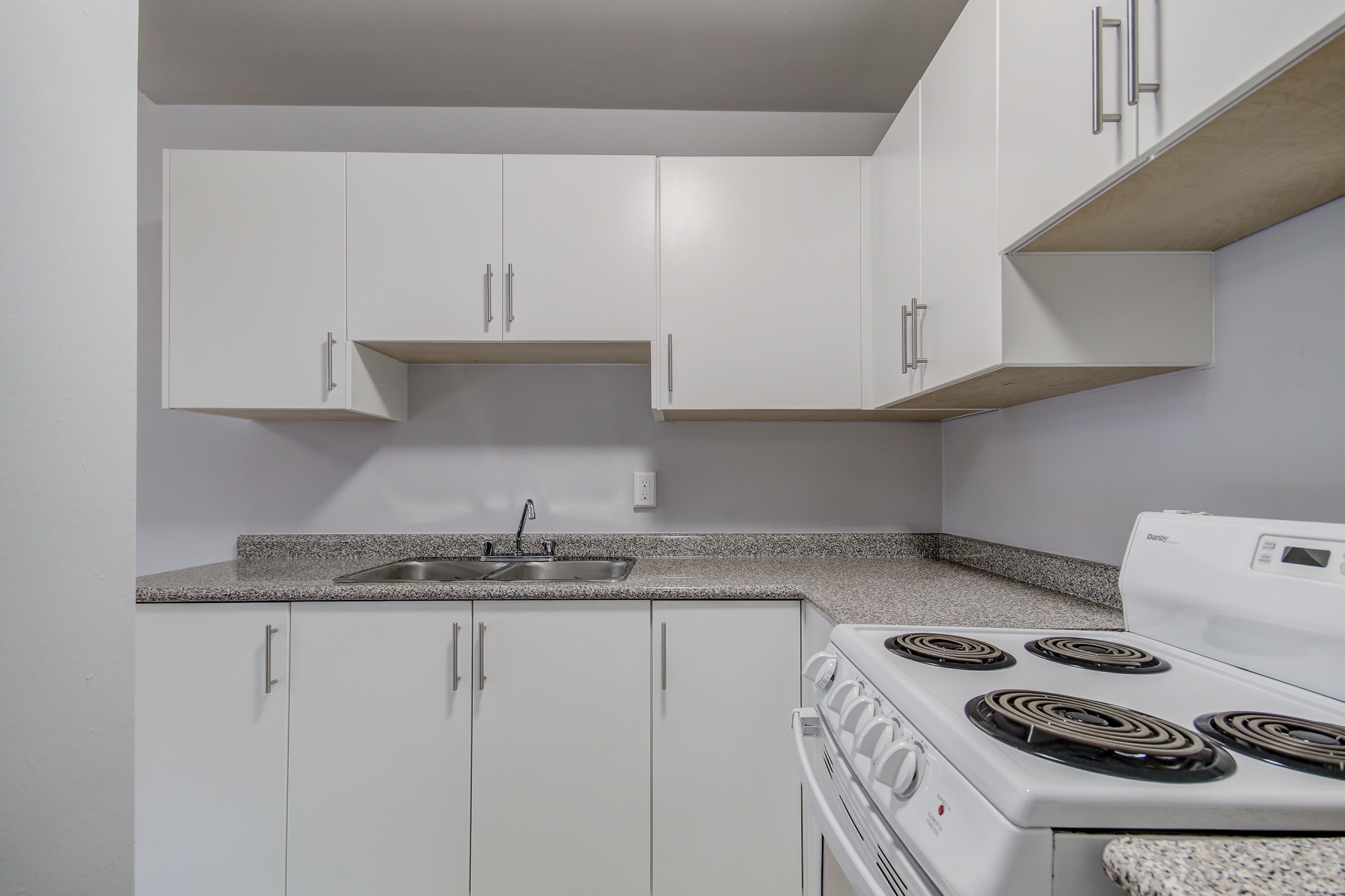 - Large renovated kitchens with ample cabinet space, includes a stove and fridge